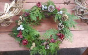 クレインでは毎年、クリスマスリースとミニクリスマスツリーを作ってます!