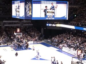 3月9日(日)長崎ヴェルカの試合観戦、松本健児リオン選手のリオンシートに招待されました! 相手は仙台、強敵です! 試合も白熱した好ゲームでした! 第1クォーターはまさかの11点差で負けていましたが、第2クオーターで追いつき同点、第3クオーターで逆転し会場もクレインの子どもたちも大盛りあがり!! そして第4クオーターはリードを広げて勝利!! 今回が初めて参加した子も、さっそく「体育館でバスケットしよう!」と気持ちもアップしてました。そしてそして、今回も近くで観戦していたリオンシートのオーナー企業さんともお話することができました! そのオーナーさん、なんと私(中村)の知り合いで、一緒に観戦できて私も楽しかったです! リオンさん、リオンシートオーナー企業の皆様、名がS気ヴェルカの皆様、いつもありがとうございます<m(__)m> 応援に熱中しすぎて、写真、ほとんど撮ってなかった・・・