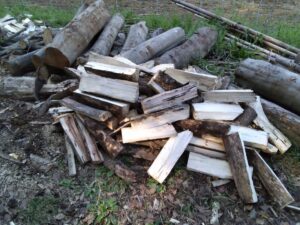「ヤギのおじさん」のところの炭窯で使う薪の準備のお手伝いで薪割!